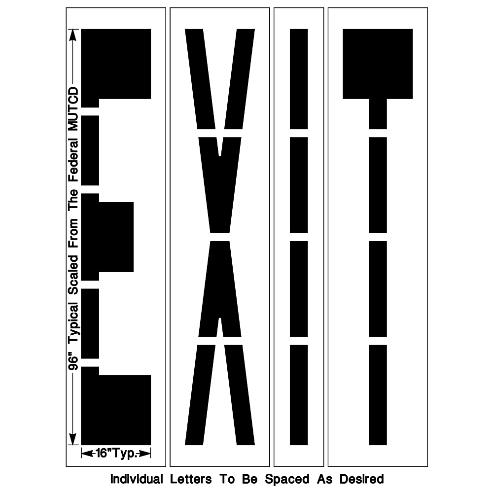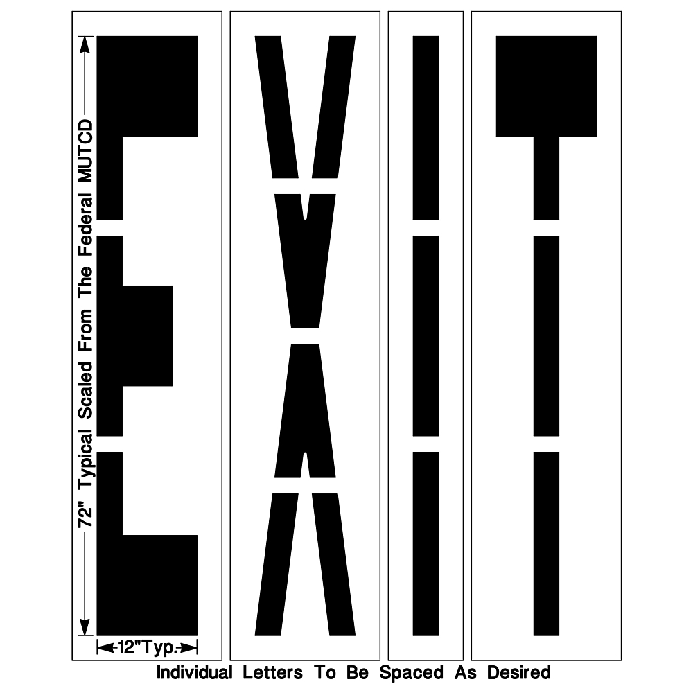 Our Federal EXIT Stencil is used to mark roadways cleanly and safely. It adheres to Federal specifications and comes in three sizes (48″ H, 72″ H & 96″ H). Cut from 1/8″ PolyTough Plastic that comes with a Lifetime Warranty. Proudly Made in the USA