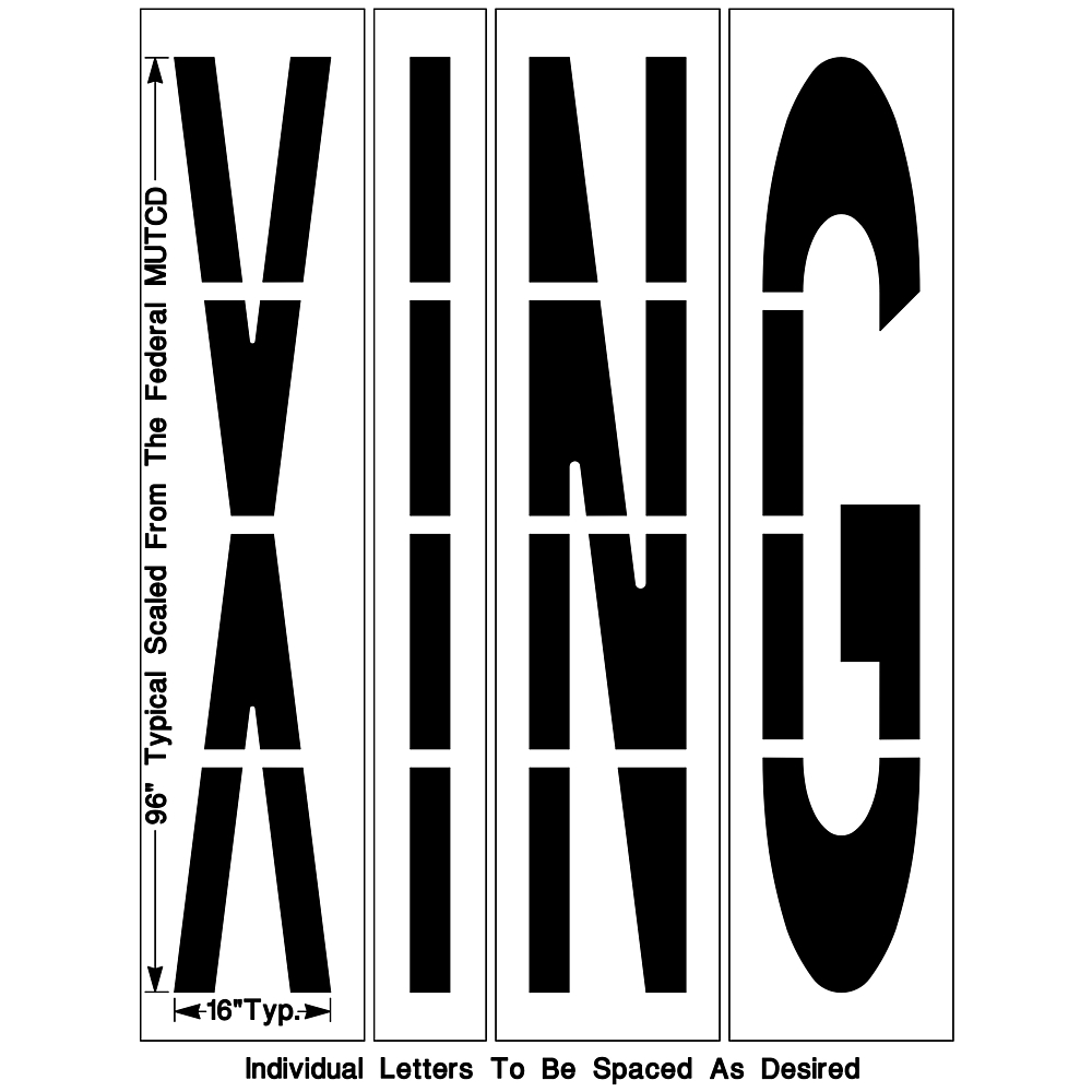 Our Federal XING Stencil is used to mark roadways cleanly and safely. It meets Federal specifications and comes in multiple stencil lheights (48″, 72″ & 96″). It’s cut from 1/8″ PolyTough Plastic that comes with a Lifetime Warranty. Proudly Made in the USA.